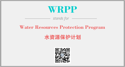 上述内容是“Water Resources Protection Program”作为“WRPP”的缩写,解释为“水资源保护计划”时的信息,以及英文缩略词WRPP所代表的英文单词,其对应的中文拼音、详细解释以及在英文中的流行度和相关分类、应用领域及应用示例等。