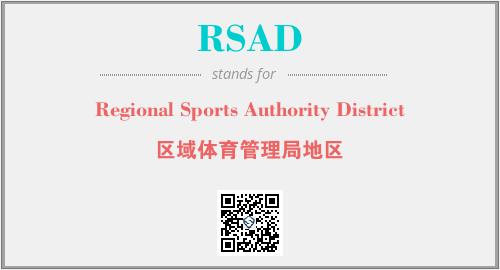 上述内容是“Regional Sports Authority District”作为“RSAD”的缩写,解释为“区域体育管理局地区”时的信息,以及英文缩略词RSAD所代表的英文单词,其对应的中文拼音、详细解释以及在英文中的流行度和相关分类、应用领域及应用示例等。