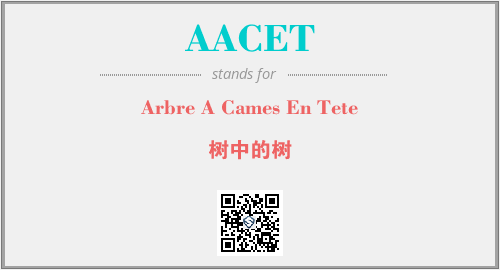 英文缩略词“AACET”经常作为“Arbre A Cames En Tete”的英文缩写来使用,中文表示:“树中的树”。本文将详细介绍英文缩写词AACET所代表英文单词,其对应的中文拼音、详细解释以及在英语中的流行度。此外,还有关于缩略词AACET的分类、应用领域及相关应用示例等。