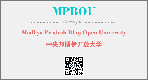 英文缩略词“MPBOU”经常作为“Madhya Pradesh Bhoj Open University”的英文缩写来使用,中文表示:“中央邦博伊开放大学”。本文将详细介绍英文缩写词MPBOU所代表英文单词,其对应的中文拼音、详细解释以及在英语中的流行度。此外,还有关于缩略词MPBOU的分类、应用领域及相关应用示例等。