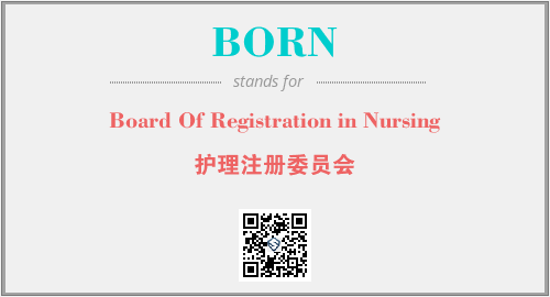 上述内容是“Board Of Registration in Nursing”作为“BORN”的缩写,解释为“护理注册委员会”时的信息,以及英文缩略词BORN所代表的英文单词,其对应的中文拼音、详细解释以及在英文中的流行度和相关分类、应用领域及应用示例等。