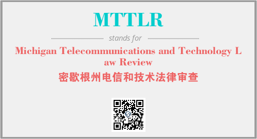 以上为Michigan Telecommunications and Technology Law Review英文缩略词MTTLR的中文解释,以及该英文缩写在英语的流行度、分类和应用领域方面的信息。