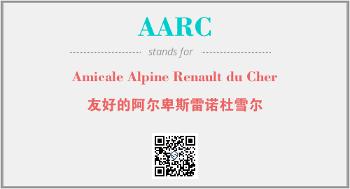 英文缩略词“AARC”经常作为“Amicale Alpine Renault du Cher”的英文缩写来使用,中文表示:“友好的阿尔卑斯雷诺杜雪尔”。本文将详细介绍英文缩写词AARC所代表英文单词,其对应的中文拼音、详细解释以及在英语中的流行度。此外,还有关于缩略词AARC的分类、应用领域及相关应用示例等。
