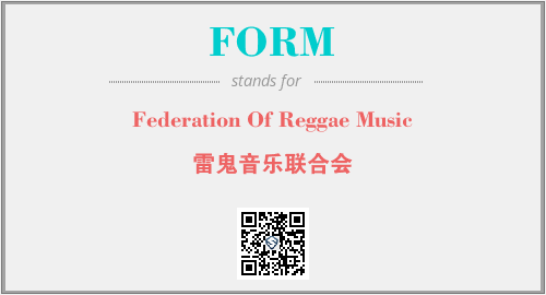 上述内容是“Federation Of Reggae Music”作为“FORM”的缩写,解释为“雷鬼音乐联合会”时的信息,以及英文缩略词FORM所代表的英文单词,其对应的中文拼音、详细解释以及在英文中的流行度和相关分类、应用领域及应用示例等。