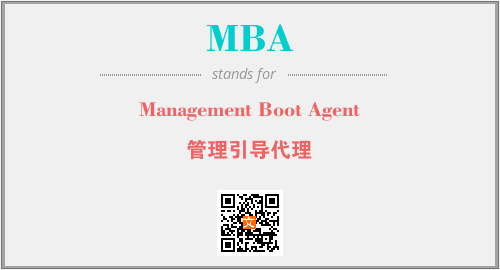 英文缩略词“MBA”经常作为“Management Boot Agent”的英文缩写来使用,中文表示:“管理引导代理”。本文将详细介绍英文缩写词MBA所代表英文单词,其对应的中文拼音、详细解释以及在英语中的流行度。此外,还有关于缩略词MBA的分类、应用领域及相关应用示例等。