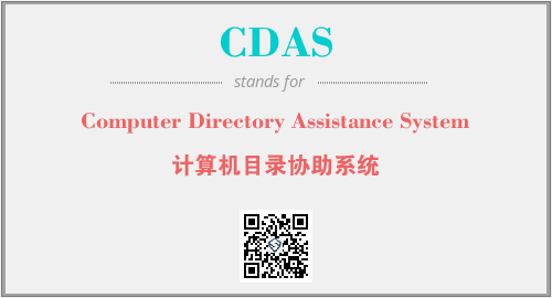 上述内容是“Computer Directory Assistance System”作为“CDAS”的缩写,解释为“计算机目录协助系统”时的信息,以及英文缩略词CDAS所代表的英文单词,其对应的中文拼音、详细解释以及在英文中的流行度和相关分类、应用领域及应用示例等。