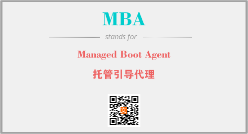 英文缩略词“MBA”经常作为“Managed Boot Agent”的英文缩写来使用,中文表示:“托管引导代理”。本文将详细介绍英文缩写词MBA所代表英文单词,其对应的中文拼音、详细解释以及在英语中的流行度。此外,还有关于缩略词MBA的分类、应用领域及相关应用示例等。
