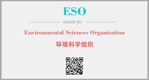 上述内容是“Environmental Sciences Organization”作为“ESO”的缩写,解释为“环境科学组织”时的信息,以及英文缩略词ESO所代表的英文单词,其对应的中文拼音、详细解释以及在英文中的流行度和相关分类、应用领域及应用示例等。