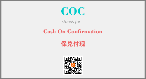 英文缩略词“COC”经常作为“Cash On Confirmation”的英文缩写来使用,中文表示:“保兑付现”。本文将详细介绍英文缩写词COC所代表英文单词,其对应的中文拼音、详细解释以及在英语中的流行度。此外,还有关于缩略词COC的分类、应用领域及相关应用示例等。