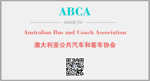 上述内容是“Australian Bus and Coach Association”作为“ABCA”的缩写,解释为“澳大利亚公共汽车和客车协会”时的信息,以及英文缩略词ABCA所代表的英文单词,其对应的中文拼音、详细解释以及在英文中的流行度和相关分类、应用领域及应用示例等。