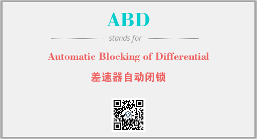 上述内容是“Automatic Blocking of Differential”作为“ABD”的缩写,解释为“差速器自动闭锁”时的信息,以及英文缩略词ABD所代表的英文单词,其对应的中文拼音、详细解释以及在英文中的流行度和相关分类、应用领域及应用示例等。