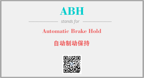 英文缩略词“ABH”经常作为“Automatic Brake Hold”的英文缩写来使用,中文表示:“自动制动保持”。本文将详细介绍英文缩写词ABH所代表英文单词,其对应的中文拼音、详细解释以及在英语中的流行度。此外,还有关于缩略词ABH的分类、应用领域及相关应用示例等。