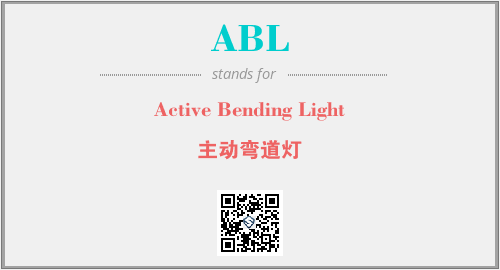 英文缩略词“ABL”经常作为“Active Bending Light”的英文缩写来使用,中文表示:“主动弯道灯”。本文将详细介绍英文缩写词ABL所代表英文单词,其对应的中文拼音、详细解释以及在英语中的流行度。此外,还有关于缩略词ABL的分类、应用领域及相关应用示例等。