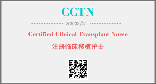 英文缩略词“CCTN”经常作为“Certified Clinical Transplant Nurse”的英文缩写来使用,中文表示:“注册临床移植护士”。本文将详细介绍英文缩写词CCTN所代表英文单词,其对应的中文拼音、详细解释以及在英语中的流行度。此外,还有关于缩略词CCTN的分类、应用领域及相关应用示例等。
