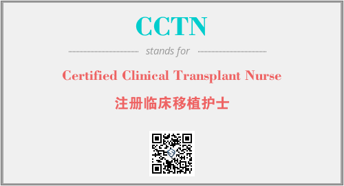 英文缩略词“CCTN”经常作为“Certified Clinical Transplant Nurse”的英文缩写来使用,中文表示:“注册临床移植护士”。本文将详细介绍英文缩写词CCTN所代表英文单词,其对应的中文拼音、详细解释以及在英语中的流行度。此外,还有关于缩略词CCTN的分类、应用领域及相关应用示例等。