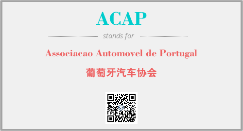 上述内容是“Associacao Automovel de Portugal”作为“ACAP”的缩写,解释为“葡萄牙汽车协会”时的信息,以及英文缩略词ACAP所代表的英文单词,其对应的中文拼音、详细解释以及在英文中的流行度和相关分类、应用领域及应用示例等。