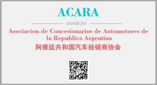 上述内容是“Asociacion de Concesionarios de Automotores de la Republica Argentina”作为“ACARA”的缩写,解释为“阿根廷共和国汽车经销商协会”时的信息,以及英文缩略词ACARA所代表的英文单词,其对应的中文拼音、详细解释以及在英文中的流行度和相关分类、应用领域及应用示例等。