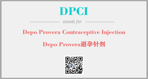英文缩略词“DPCI”经常作为“Depo Provera Contraceptive Injection”的英文缩写来使用,中文表示:“Depo Provera避孕针剂”。本文将详细介绍英文缩写词DPCI所代表英文单词,其对应的中文拼音、详细解释以及在英语中的流行度。此外,还有关于缩略词DPCI的分类、应用领域及相关应用示例等。
