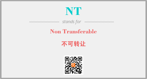 英文缩略词“NT”经常作为“Non Transferable”的英文缩写来使用,中文表示:“不可转让”。本文将详细介绍英文缩写词NT所代表英文单词,其对应的中文拼音、详细解释以及在英语中的流行度。此外,还有关于缩略词NT的分类、应用领域及相关应用示例等。