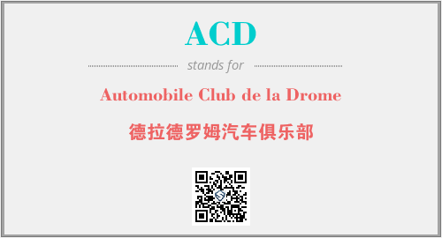 以上为Automobile Club de la Drome英文缩略词ACD的中文解释,以及该英文缩写在英语的流行度、分类和应用领域方面的信息。