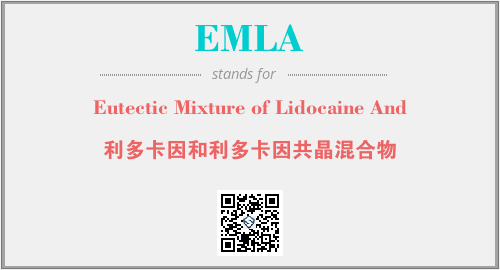 以上为Eutectic Mixture of Lidocaine And英文缩略词EMLA的中文解释,以及该英文缩写在英语的流行度、分类和应用领域方面的信息。