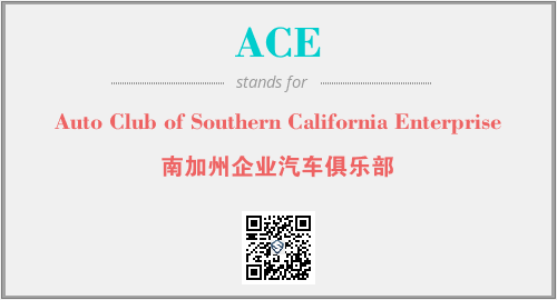 上述内容是“Auto Club of Southern California Enterprise”作为“ACE”的缩写,解释为“南加州企业汽车俱乐部”时的信息,以及英文缩略词ACE所代表的英文单词,其对应的中文拼音、详细解释以及在英文中的流行度和相关分类、应用领域及应用示例等。