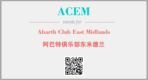 上述内容是“Abarth Club East Midlands”作为“ACEM”的缩写,解释为“阿巴特俱乐部东米德兰”时的信息,以及英文缩略词ACEM所代表的英文单词,其对应的中文拼音、详细解释以及在英文中的流行度和相关分类、应用领域及应用示例等。