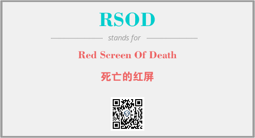 英文缩略词“RSOD”经常作为“Red Screen Of Death”的英文缩写来使用,中文表示:“死亡的红屏”。本文将详细介绍英文缩写词RSOD所代表英文单词,其对应的中文拼音、详细解释以及在英语中的流行度。此外,还有关于缩略词RSOD的分类、应用领域及相关应用示例等。