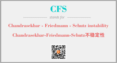 上述内容是“Chandrasekhar - Friedmann - Schutz instability”作为“CFS”的缩写,解释为“Chandrasekhar-Friedmann-Schutz不稳定性”时的信息,以及英文缩略词CFS所代表的英文单词,其对应的中文拼音、详细解释以及在英文中的流行度和相关分类、应用领域及应用示例等。