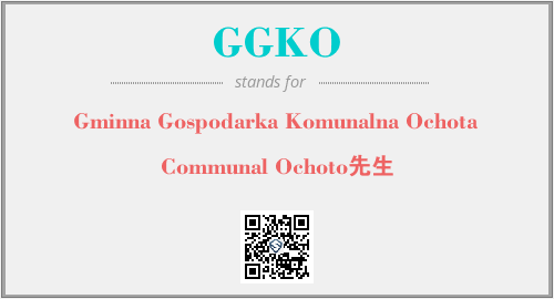上述内容是“Gminna Gospodarka Komunalna Ochota”作为“GGKO”的缩写,解释为“Communal Ochoto先生”时的信息,以及英文缩略词GGKO所代表的英文单词,其对应的中文拼音、详细解释以及在英文中的流行度和相关分类、应用领域及应用示例等。
