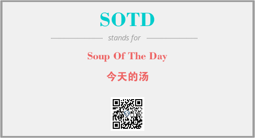 以上为Soup Of The Day英文缩略词SOTD的中文解释,以及该英文缩写在英语的流行度、分类和应用领域方面的信息。