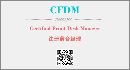 英文缩略词“CFDM”经常作为“Certified Front Desk Manager”的英文缩写来使用,中文表示:“注册前台经理”。本文将详细介绍英文缩写词CFDM所代表英文单词,其对应的中文拼音、详细解释以及在英语中的流行度。此外,还有关于缩略词CFDM的分类、应用领域及相关应用示例等。
