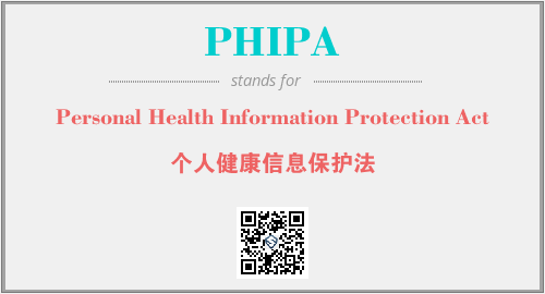 上述内容是“Personal Health Information Protection Act”作为“PHIPA”的缩写,解释为“个人健康信息保护法”时的信息,以及英文缩略词PHIPA所代表的英文单词,其对应的中文拼音、详细解释以及在英文中的流行度和相关分类、应用领域及应用示例等。