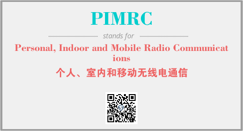 英文缩略词“PIMRC”经常作为“Personal, Indoor and Mobile Radio Communications”的英文缩写来使用,中文表示:“个人、室内和移动无线电通信”。本文将详细介绍英文缩写词PIMRC所代表英文单词,其对应的中文拼音、详细解释以及在英语中的流行度。此外,还有关于缩略词PIMRC的分类、应用领域及相关应用示例等。
