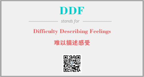 以上为Difficulty Describing Feelings英文缩略词DDF的中文解释,以及该英文缩写在英语的流行度、分类和应用领域方面的信息。