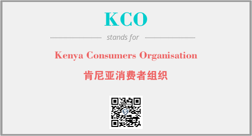 上述内容是“Kenya Consumers Organisation”作为“KCO”的缩写,解释为“肯尼亚消费者组织”时的信息,以及英文缩略词KCO所代表的英文单词,其对应的中文拼音、详细解释以及在英文中的流行度和相关分类、应用领域及应用示例等。