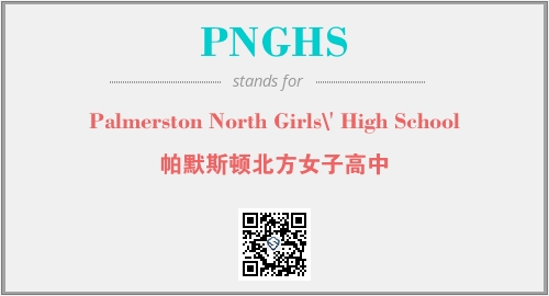 上述内容是“Palmerston North Girls\' High School”作为“PNGHS”的缩写,解释为“帕默斯顿北方女子高中”时的信息,以及英文缩略词PNGHS所代表的英文单词,其对应的中文拼音、详细解释以及在英文中的流行度和相关分类、应用领域及应用示例等。