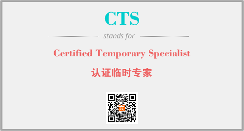 以上为Certified Temporary Specialist英文缩略词CTS的中文解释,以及该英文缩写在英语的流行度、分类和应用领域方面的信息。