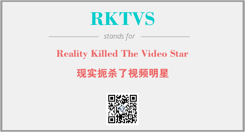 上述内容是“Reality Killed The Video Star”作为“RKTVS”的缩写,解释为“现实扼杀了视频明星”时的信息,以及英文缩略词RKTVS所代表的英文单词,其对应的中文拼音、详细解释以及在英文中的流行度和相关分类、应用领域及应用示例等。