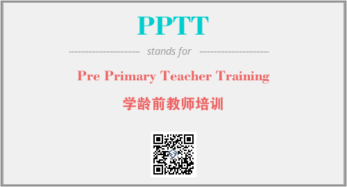 英文缩略词“PPTT”经常作为“Pre Primary Teacher Training”的英文缩写来使用,中文表示:“学龄前教师培训”。本文将详细介绍英文缩写词PPTT所代表英文单词,其对应的中文拼音、详细解释以及在英语中的流行度。此外,还有关于缩略词PPTT的分类、应用领域及相关应用示例等。