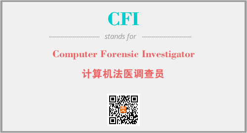 上述内容是“Computer Forensic Investigator”作为“CFI”的缩写,解释为“计算机法医调查员”时的信息,以及英文缩略词CFI所代表的英文单词,其对应的中文拼音、详细解释以及在英文中的流行度和相关分类、应用领域及应用示例等。