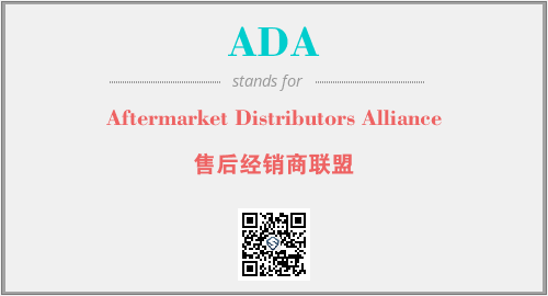 英文缩略词“ADA”经常作为“Aftermarket Distributors Alliance”的英文缩写来使用,中文表示:“售后经销商联盟”。本文将详细介绍英文缩写词ADA所代表英文单词,其对应的中文拼音、详细解释以及在英语中的流行度。此外,还有关于缩略词ADA的分类、应用领域及相关应用示例等。
