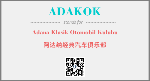 以上为Adana Klasik Otomobil Kulubu英文缩略词ADAKOK的中文解释,以及该英文缩写在英语的流行度、分类和应用领域方面的信息。