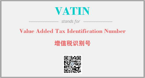 英文缩略词“VATIN”经常作为“Value Added Tax Identification Number”的英文缩写来使用,中文表示:“增值税识别号”。本文将详细介绍英文缩写词VATIN所代表英文单词,其对应的中文拼音、详细解释以及在英语中的流行度。此外,还有关于缩略词VATIN的分类、应用领域及相关应用示例等。