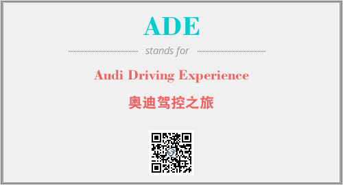 英文缩略词“ADE”经常作为“Audi Driving Experience”的英文缩写来使用,中文表示:“奥迪驾控之旅”。本文将详细介绍英文缩写词ADE所代表英文单词,其对应的中文拼音、详细解释以及在英语中的流行度。此外,还有关于缩略词ADE的分类、应用领域及相关应用示例等。