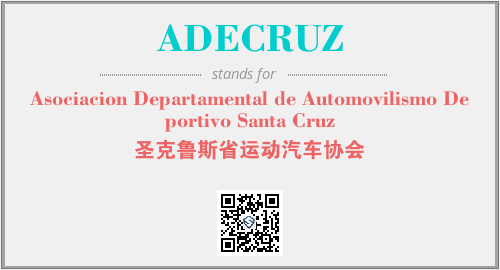 以上为Asociacion Departamental de Automovilismo Deportivo Santa Cruz英文缩略词ADECRUZ的中文解释,以及该英文缩写在英语的流行度、分类和应用领域方面的信息。