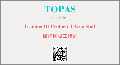 上述内容是“Training Of Protected Area Staff”作为“TOPAS”的缩写,解释为“保护区员工培训”时的信息,以及英文缩略词TOPAS所代表的英文单词,其对应的中文拼音、详细解释以及在英文中的流行度和相关分类、应用领域及应用示例等。