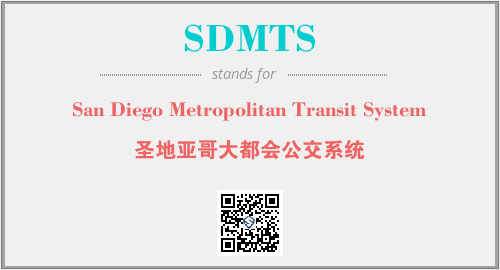 上述内容是“San Diego Metropolitan Transit System”作为“SDMTS”的缩写,解释为“圣地亚哥大都会公交系统”时的信息,以及英文缩略词SDMTS所代表的英文单词,其对应的中文拼音、详细解释以及在英文中的流行度和相关分类、应用领域及应用示例等。
