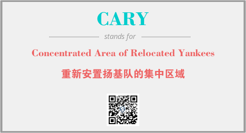 上述内容是“Concentrated Area of Relocated Yankees”作为“CARY”的缩写,解释为“重新安置扬基队的集中区域”时的信息,以及英文缩略词CARY所代表的英文单词,其对应的中文拼音、详细解释以及在英文中的流行度和相关分类、应用领域及应用示例等。