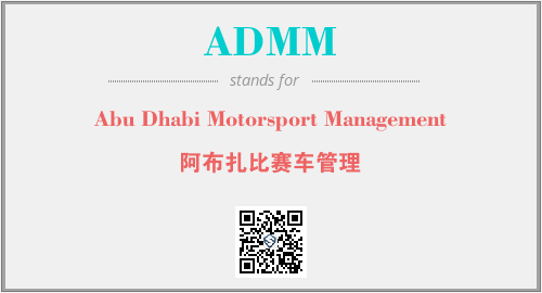 英文缩略词“ADMM”经常作为“Abu Dhabi Motorsport Management”的英文缩写来使用,中文表示:“阿布扎比赛车管理”。本文将详细介绍英文缩写词ADMM所代表英文单词,其对应的中文拼音、详细解释以及在英语中的流行度。此外,还有关于缩略词ADMM的分类、应用领域及相关应用示例等。